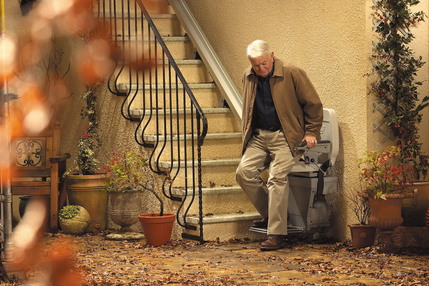 The Stannah 320 is a slimline external stairlift for straight stairs. It has been designed from the ground up to be used outdoors while keeping the same functionality and ease of use as an internal stairlift.